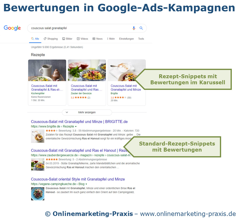 Bewertungen in den organischen Treffern von Suchmaschinen (SEO)