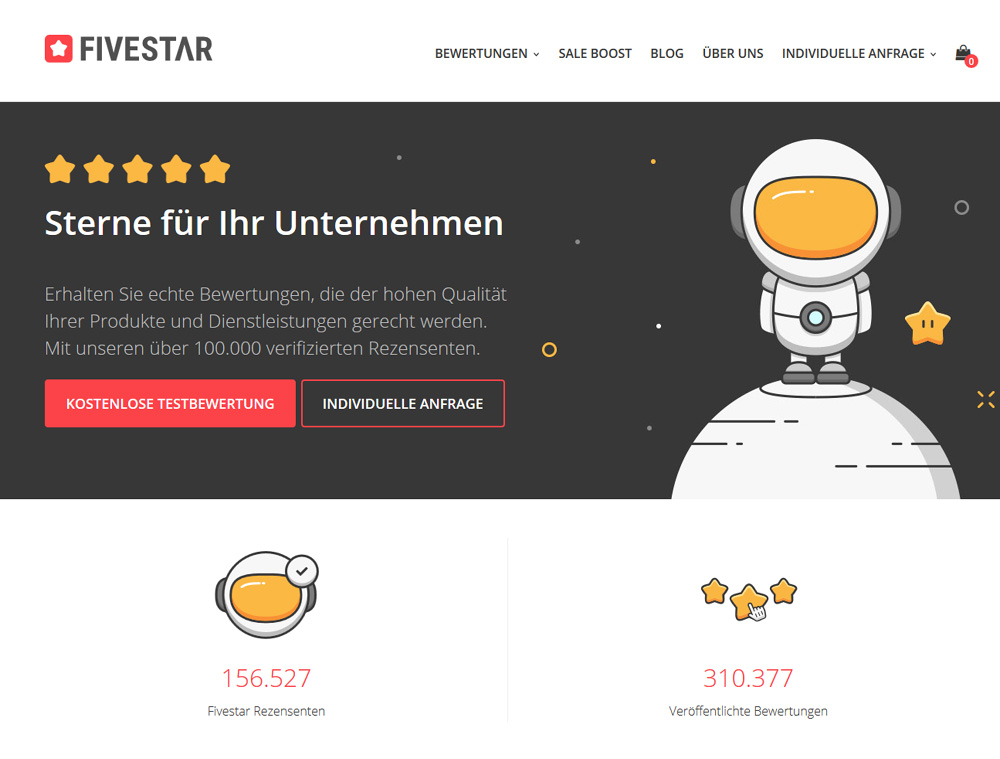 Es gibt Plattformen wie Fivestar Marketing, die die Möglichkeit bieten, Bewertungen aktiv zu verbessern. Nach Angaben auf der Website hat der Anbieter Kontakt zu 156.527 Rezensenten, die insgesamt mehr als 310.377 Bewertungen veröffentlicht haben (Stand September 2019).